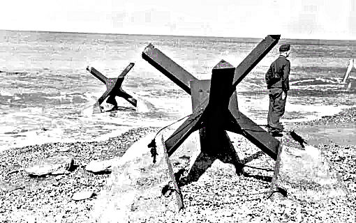 Another very common duel purpose barrier was known as the Czech hedgehogs (Tschechenigel) Beyond the beaches were numerous minefields