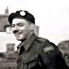 The withdrawal was not with out incident. The German artillery had knocked down many walls in Norrey-en-Bessin blocking most of the roads and the Sherman of Lieutenant Bill “Rip” Gordon managed to block the remaining road when his driver attempted to take the 90 degree turn at top speed and rolled the 32-ton tank onto its side. Track marks can still be seen on the side of the building that the tank hit. Ordered to knock down walls in order to get through the village one tank attempting to drive through a house promptly found itself in the basement. The Germans did not let up on the withdrawing squadron and Lieutenant Bill McCormick watched the tanks on either side of him go up in flames before his tank was also hit. Seeing the German tank off to his right he frantically ordered the gunner, trooper Len Magee, to engage but he was too late and the next German round went through the turret severely wounding him in the legs and killing his gunner and the loader, trooper W.W. Millar. McCormick woke up to find himself on the ground with several other survivors. Corporal Simmons, trooper “Frenchie” Moreau, and trooper Alf Cooper. Knowing that his legs were useless he ordered the others to leave him but they would not. Dressing his wounds as well as they could they set off crawling through the waist high grain. At some point Moreau and Simmons got detached from the group and only Cooper was left dragging the much larger McCormick all the time under continuous mortar and small arms fire. McCormick was wounded again this time by a bullet but Trooper Cooper continued to drag him for more than a mile before they finally made it back to the Canadian lines. Both men survived the war but Lieutenant McCormick lost his right leg.*