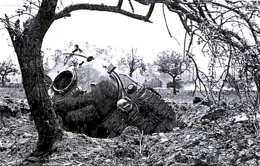 Sitting on the start line Major Conron commanding A-Squadron later remarked that there “Seemed to be tanks as far as the eye could see”. 8 Squadrons were in line abreast with only a few yards between vehicles and immediately to the rear were 4 more squadrons and 2 brigades of infantry mounted in their Kangaroos. Shortly before noon the artillery began to fire and the now almost obligatory air raid announced the opening of the attack. At precisely 12:00 hours the Hussars moved off the start line at the mandated 12 mph. The imperative was to smash though any opposition, get to the river, and across as quickly as possible. It was expected that this would only take only 13 minutes. However almost immediately things began to go wrong. As Major Conron put it “The speed of the advance over rough and uneven ground had ammunition continually falling out of its racks and made it impossible to read a map”. In addition, the tanks had to maneuver around bomb craters, over a sunken road, and deal with a more determined resistance than expected, all while almost completely blinded by dust and smoke. In yet another example of appallingly bad luck a Canadian officer returning from an orders group the previous evening blundered into enemy lines and was killed. On his body the Germans found a complete set of orders for the coming attack and as a result, the 12th SS Panzer Division was able to deploy an additional 500 grenadiers and 15 tanks, along with twelve 88mm anti-tank guns along the expected line of approach. Visibility very quickly became so bad that drivers were ordered to “Steer towards the sun” which unfortunately resulted the leading squadrons veering too far east and becoming mixed in with the 4th armoured Brigade creating a colossal traffic jam as they attempted to cross the river in Rouvres. For someone not there it is hard to understand the chaos experienced by the troops that day. The enemy was everywhere. As Major Conron later described the scene “Tanks were crashing through obstacles at top speed and were continually confronted by 4-6 anti-tank guns behind each hedge”. “These were often simply run over but invariably one or more tanks became casualties and the path to the Laizon was marked by numerous burning tanks. It was essential to maintain speed as any hesitation was immediately countered by determined attacks by German infantry”.